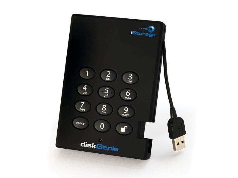 Istorage diskgenie. One company istorage has gone a stage further by adopting a belt and braces approach with its diskgenie product. It features secure aes 256 encryption and is unlocked by a number keypad. The istorage diskgenie is dg 256 500 500gb utilises government grade aes 256 real time hardware encryption which encrypts all data held on the drive keeping it safe even if the hard drive is removed from its enclosure.